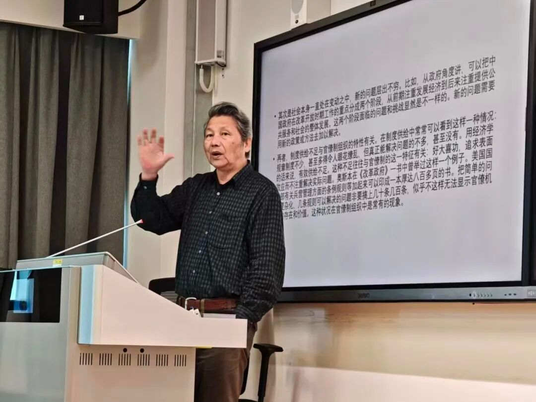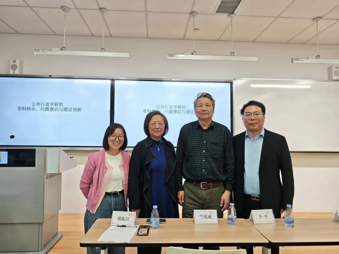 随后举行的第二场讲座由邢振江教授主持,讲座围绕“公共行政学研究:学科特点、问题意识与理论创新”展开。作为我国公共行政学领域的开拓者,竺乾威教授从公共行政学的学科特点、研究问题的四个来源与中国的行政实践与理论创新这三个方面对公共行政学研究进行阐述,探讨了理论创新的可能路径与发展方向。通过生动具体的案例解析,竺教授将抽象的理论知识与具体的行政实践相结合,不仅深化了师生对公共行政学学科本质的理解,更激发了大家的学术研究热情,为后续的学术探索提供了宝贵思路。