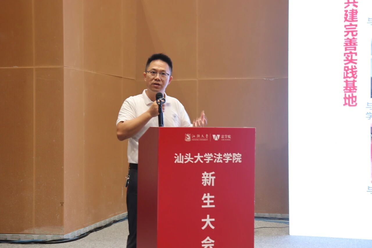 1994级国际经济法专业校友彭童峰先生作为校友嘉宾发言。他回望自己在汕大法学院的求学生涯,重温了与师长探讨学问、和同窗并肩成长的难忘岁月。作为汕头市律师协会会长、广东岭泰律师事务所主任,彭童峰先生还结合自身多年深耕法律领域的职业经历,为新生们细致解读了当前法律行业的发展机遇,同时分享了从职场新人到行业骨干的成长路径。最后,他对新生寄予殷切期望,鼓励同学们珍惜大学时光,筑牢理论基础,积极投身实践活动,为社会发展贡献力量。