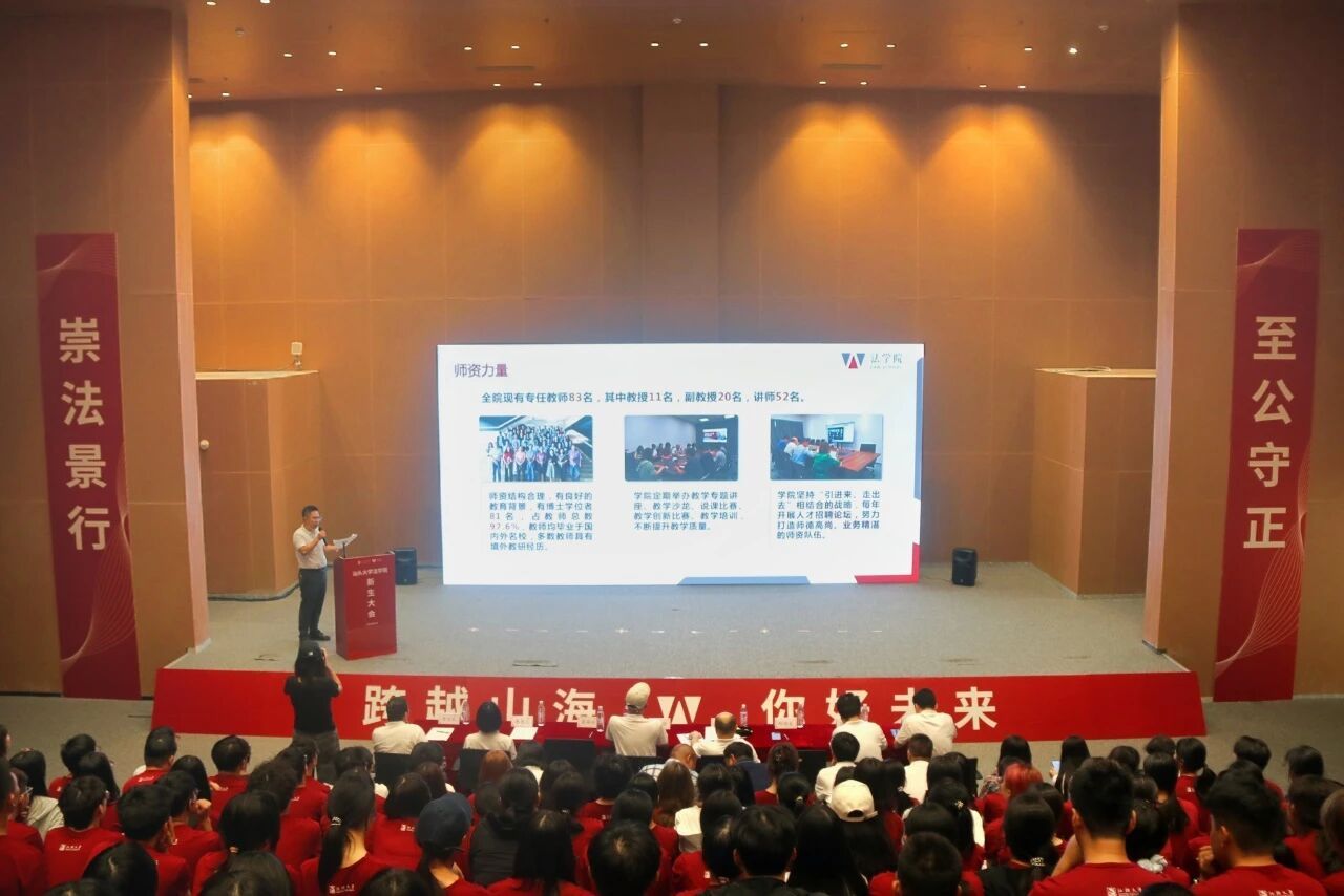 邱国良副院长围绕学院情况作了全面介绍。他先从法学院的发展历程、学科概况、科研成果、师资力量等关键内容展开说明,随后进一步对同学们提出鼓励——既要沉下心钻研专业知识,把法学理论根基扎牢扎稳,也要主动走出课堂舒适区,在实践中锤炼技能,为未来投身新时代法治事业、用专业力量服务社会打下坚实基础。