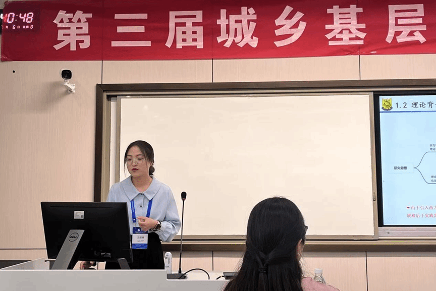 赖欣彦同学的发言题目为《旧城商业街区渐进式更新的实践逻辑与优化路径——基于IAD框架的分析》。文章基于“制度层次—制度路径—更新行动—更新结果”的分析框架,揭示旧城商业街区更新过程的多层级制度嵌套与行为互动逻辑。