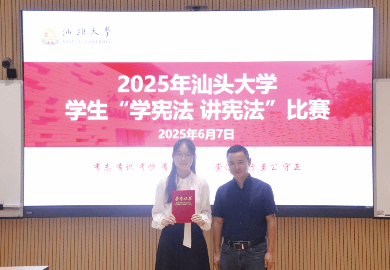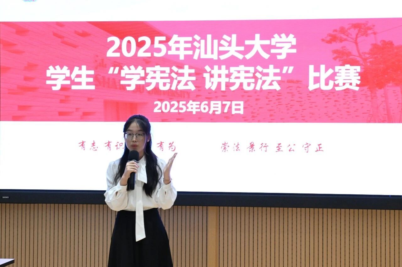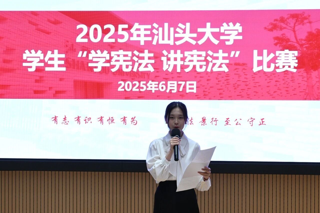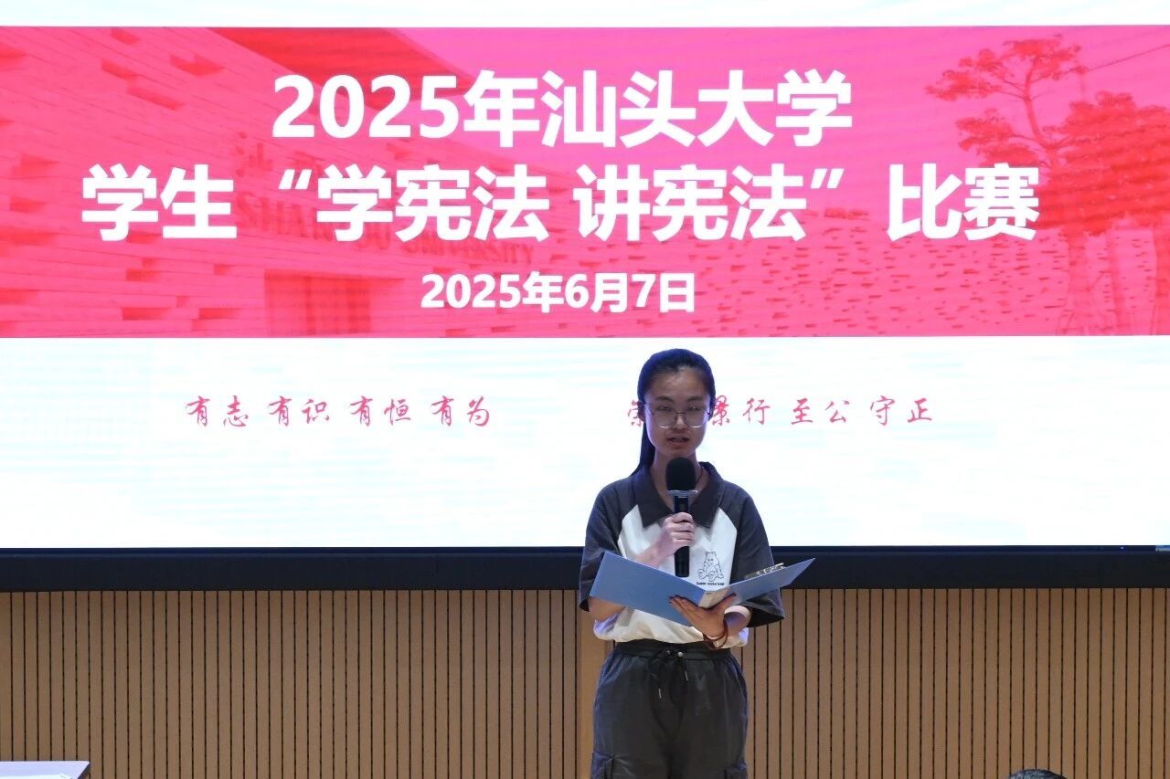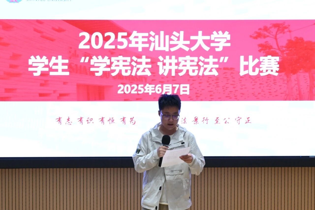 为深入贯彻党的二十大及二十届二中、三中全会精神,落实青年学生宪法法治教育,6月上旬,汕头大学党委学生工作部联合法学院开展2025年汕头大学学生“学宪法 讲宪法”比赛。活动以素养竞赛和演讲比赛为载体,旨在引导青年学子深刻理解宪法精神,树立宪法信仰,成为宪法权威的捍卫者、法治中国的建设者,为培养“懂法、知法、用法”的新时代青年筑牢法治根基。