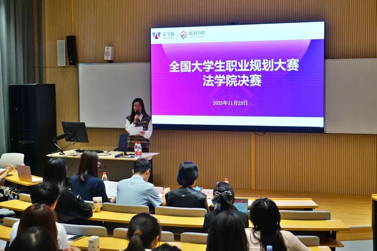 本次校赛佳绩的取得,离不开学院前期扎实的赛事筹备与选拔工作。自院赛启动,成长与就业双赛道共吸引257名同学踊跃参与,经赛前培训,以及严格的线上初审,25位优秀选手晋级院赛决赛。法学院、格致书院于 11 月 23 日在东海岸校区成功举办第三届全国大学生职业规划大赛院赛决赛,赛事特邀华中农业大学经济与管理学院创业导师、特聘副教授王露线上评审,学院团委副书记章冰燕、法学院团委副书记王斌现场担任评委,辅导员廖逸舒及二十余名参赛选手共同参与。