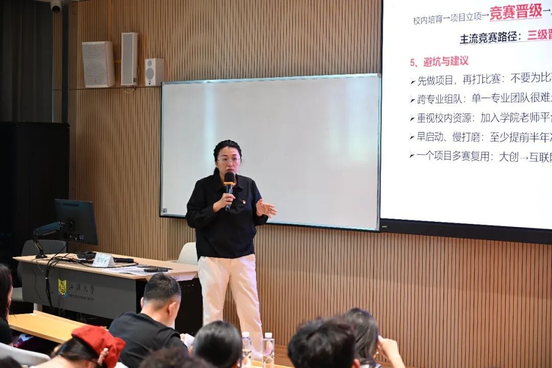 同时,针对法学、公共管理的专业特色,张丽婷副书记向同学们介绍了法治中国、基层治理、数据合规等领域的发展方向,强调同学们可以通过加入科研项目课题,与导师和队友共同实践、探究与交流,提升个人的组织沟通、团队合作、论文写作等核心能力,并详细讲解了项目申报流程、类别划分及成果转化路径,鼓励同学们跨专业组队、依托学院学校导师资源开展具有创新性与实践性的项目,赋能青春成长。