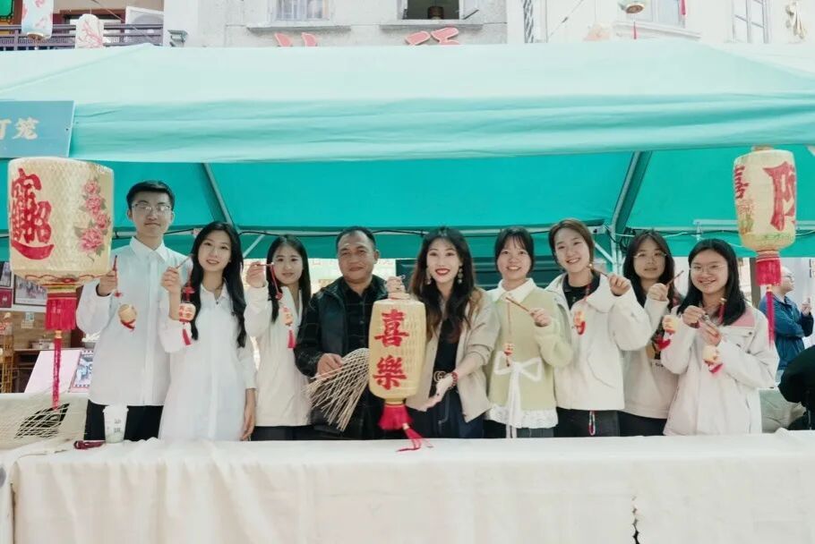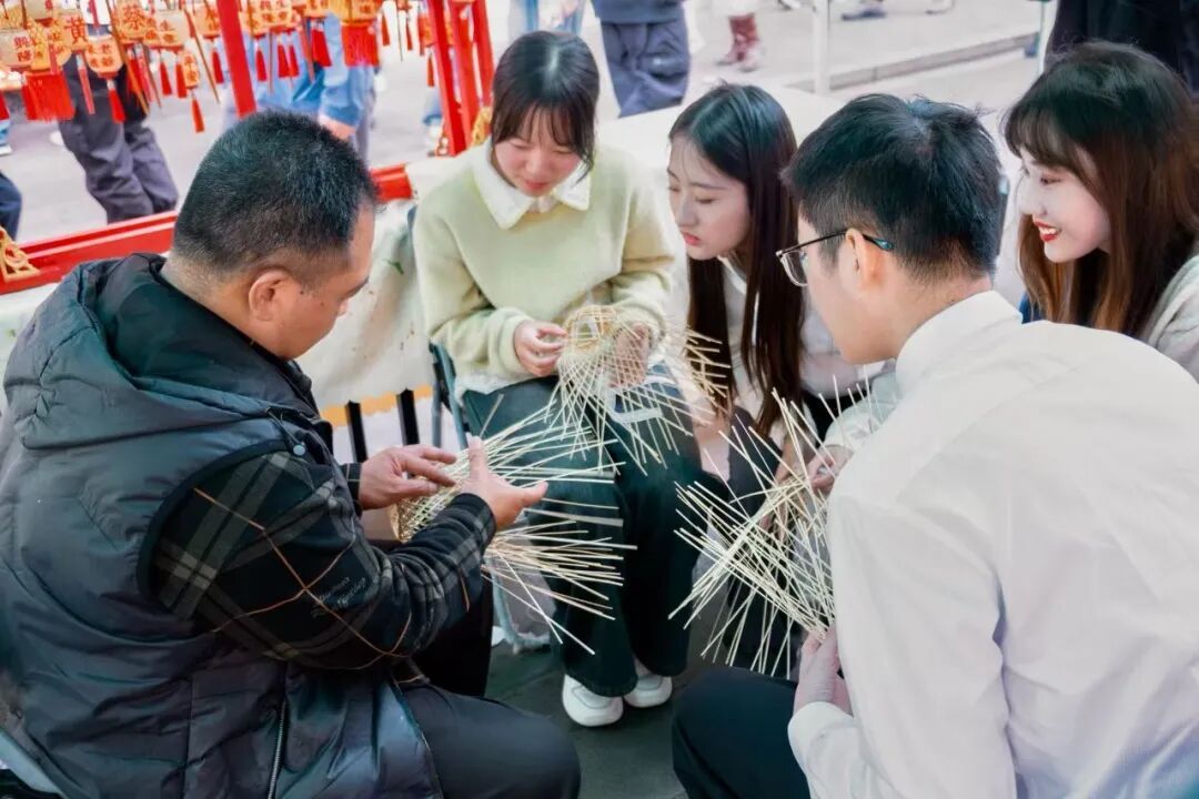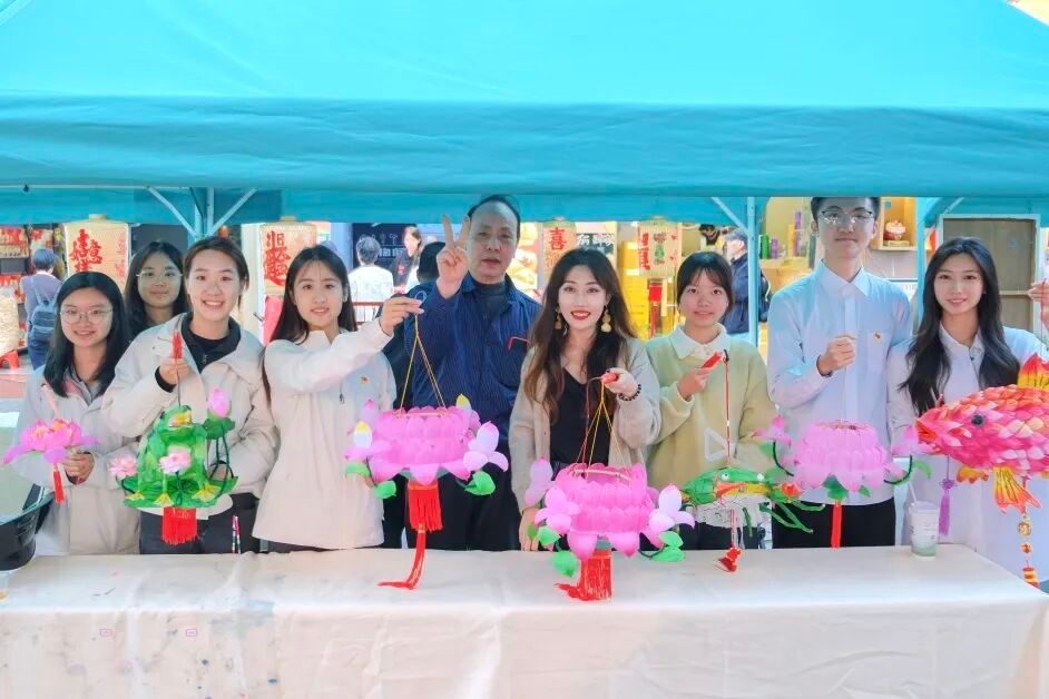 在非遗体验环节,师生们走进花灯工坊,近距离感受潮汕传统技艺的独特魅力。纸制莲花灯传承人林景华、隆都前园竹编油纸灯笼第四代传人陈炜跃现场展示扎骨架、裁灯纸、糊贴、定型等工艺流程。看似轻巧灵动的一盏花灯,背后凝结着匠人经年累月的坚守,也承载着潮汕地区独特的审美传统与文化记忆。同学们围坐案前,认真聆听讲解,俯身体验制作,于一裁一贴、一折一糊之间,真切感受到中华优秀传统文化并非遥远的历史符号,而是可触可感、可亲可近的精神财富。大家纷纷表示,走近非遗、理解非遗、热爱非遗,不仅加深了对地方文化的认识,也进一步增强了对中华优秀传统文化的认同感和自豪感,更加坚定了传承文化根脉、增强文化自信的责任意识。