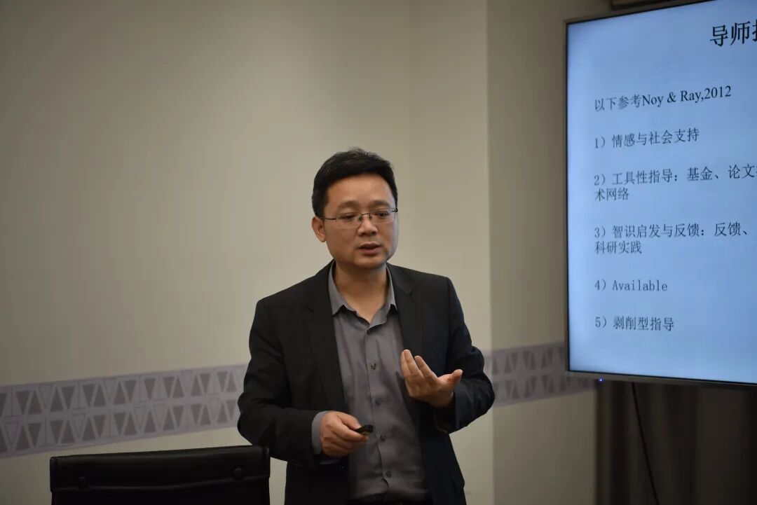 讲座开篇,沈文钦副教授指出,导师是影响研究生培养质量最关键的因素,其综合素质与投入程度直接决定培养的成效。通过对导师角色的分析,他指出,导师不仅是研究方向的把握者、研究技能的传递者、科研合作的伙伴,更是学术网络的构建者、职业发展的引路人。