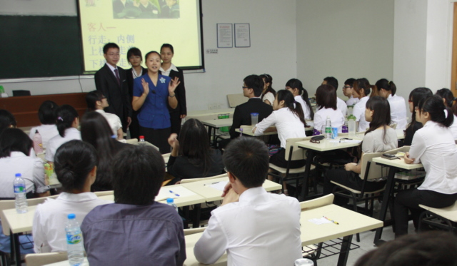 2011年7月3日,法学院举办“职场形象及社交礼仪培训”活动,邀请礼仪培训专家罗小君老师对法学院五十多名即将赴实习岗位的同学进行礼仪方面的培训。法学院苏文记书记、陈燕迎老师、王斌老师和杨仰娜老师均有出席。 课程开始时,罗小君老师引用了“礼出于俗,俗化为礼”的古语和“朋友是天,朋友是地,朋友是人民币”、“礼多人不怪”等通俗易懂的话语,形象深刻地说明了职场形象和社交礼仪知识是搞好人际关系、铺平职场道路的必修课。 上午的课程内容围绕外表有型、举止有度展开。老师分点清晰地向大家说明,要做到外表有型必须“从头做起,再看穿着,从腰做起”。期间老师向大家介绍了头发长短与颜色的要求、服装花色的搭配、皮鞋和袜子的搭配等方面的注意事项。 老师还提醒大家注意礼仪细节,给大家传授了握手、介绍人员用餐、座位安排等方面的礼仪知识。在谈到坐姿和站姿时,老师给大家介绍了“五张纸二十二天训练法”,并现场邀请同学做示范,教会了大家如何快速有效地训练站立姿势。 下午的课程的主题是“沟通有效”,老师把上司分成“军人型”“沟通型”“技术型”等不同类型,逐步讲解,教会大家如何与不同的领导交流。老师还提供了常用有效的谈话句式,生动地讲出了如何“打开话匣子,拉近人际关系”。 在讲解到“批评与表扬时”,老师表示不管是在职场中还是在日常生活人际关系中,批评和表扬都要以“归过于私室,扬善于公堂”为原则,老师向大家举了自己从事教育事业时的见闻为例,还引用了“陶行知教育打架学生”的故事,给大家做了细致形象的解说。 在一天的课程中,老师的讲解诙谐幽默,经常引得同学们哈哈大笑,课堂气氛活跃;老师非常重视与同学们的现场交流互动,每讲到一个知识点,都会请同学或者法学院老师回答问题、参加情景模拟演示,并且不厌其烦地向大家指正每个参与课堂互动的同学的穿着打扮问题,以加深大家对礼仪知识的掌握程度; 课程的最后,老师讲解到自我介绍的礼仪,邀请了蓝洪波、张梦珊两位同学上台发表了培训感言,两位同学都表示这次培训让自己获益匪浅,非常感谢老师精彩的讲解,台下同学也纷纷响应,送给老师热烈的掌声。