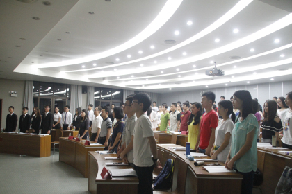 文:邓嘉鑫 图: 赵晓欣 6月6日晚,法学院在E阶204召开汕头大学法学院第十九次学生代表大会。法学院党总支苏文记书记、团委书记王斌老师和团委副书记牛婉宜老师受邀出席此次大会。 会上,代表们认真听取了汕头大学法学院十八届学生会工作报告以及大会代表资格审查报告,并举手表决通过报告。竞选演讲中,候选人结合过去一年的工作经验和对未来工作的规划,对学生会的发展提出了具有创新性的提议。演讲结束后,全体学生代表有序投票,经过监票人的公证,正式选举产生法学院学生会第十九届执委。最后,苏文记书记总结发言,鼓励我们要树立远大理想,脚踏实地,不断进取创新,提升自我。大会结束后,大家合影留念。 期望新一届执委为学院发展注入新的血液与活力,在院党总支领导和院团委的指导下,在同学们的共同努力下,带领法学院学生会再创辉煌。